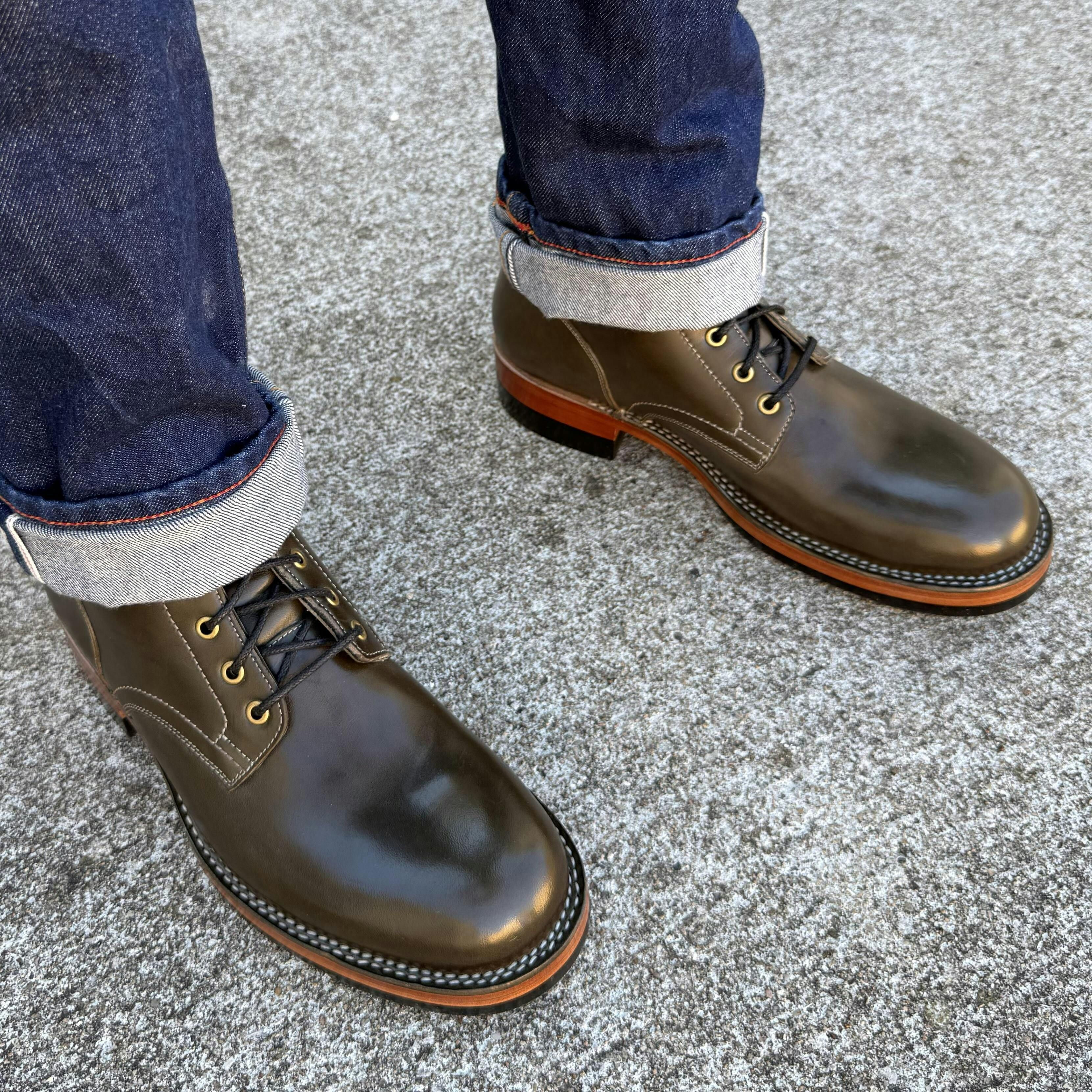 The Rudiger-Z is our take on the never-ceasing classic combat boot style, with a broader round toe and classic work boot Silhouette. The Stitchdown construction enhances the boots' ability to withstand water, making them more resilient during rugged wear.